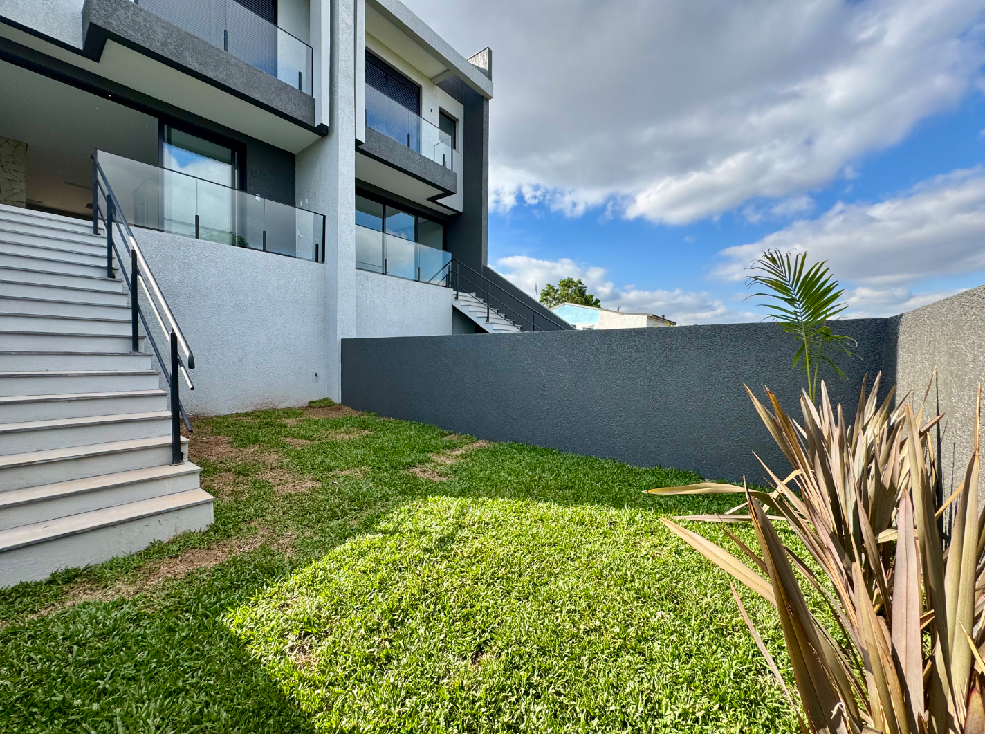 O imóvel conta ainda com persianas automatizadas, garantindo praticidade e controle de iluminação natural. Na parte externa, a casa dispõe de pátio nos fundos — ideal para lazer, pets ou projetos de paisagismo — e um jardim frontal, que valoriza a estética da fachada.